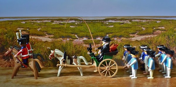 Nach einer halben Stunde ging es weiter, immer in dem gleichen Aufzuge… Jetzt erst traten wir in ein Terrain, das diesen Küsten eigentümlich ist und die ‚Marais‘ (Meeressümpfe), angeschwemmtes, dem Meere entwachsenes Land, das aber immer noch zweilebig geblieben ist und in seinem Luch- und Sumpfcharakter nicht recht weiß, wozu es sich halten soll.