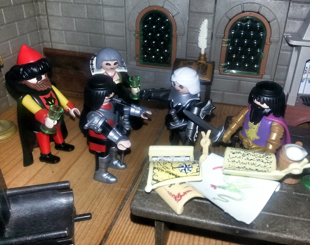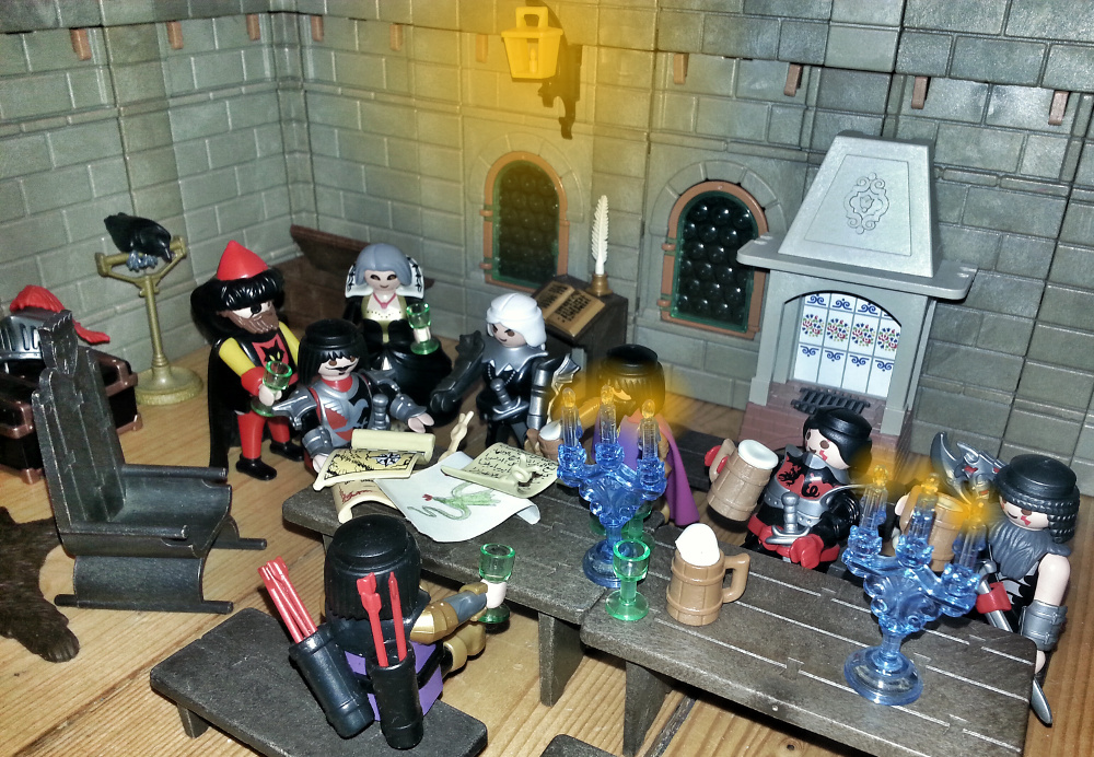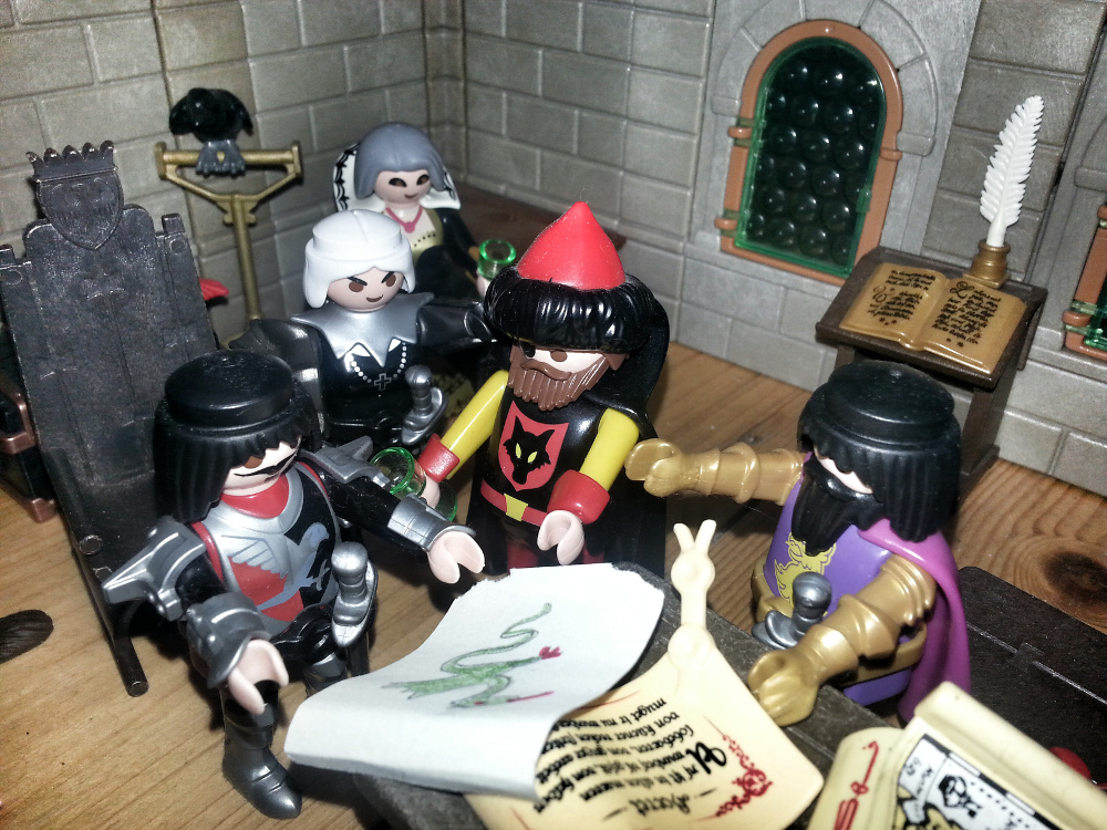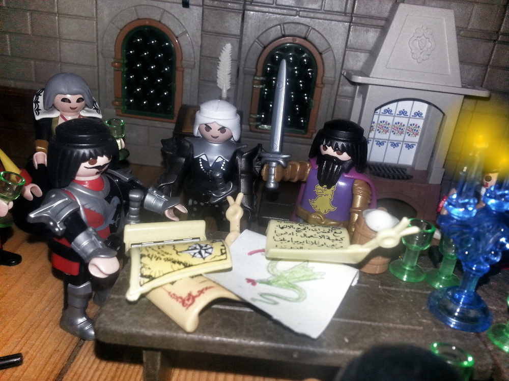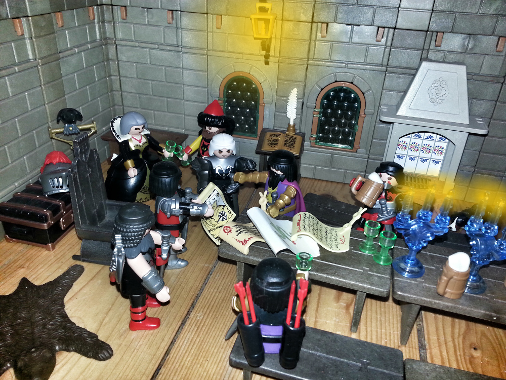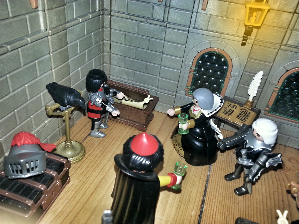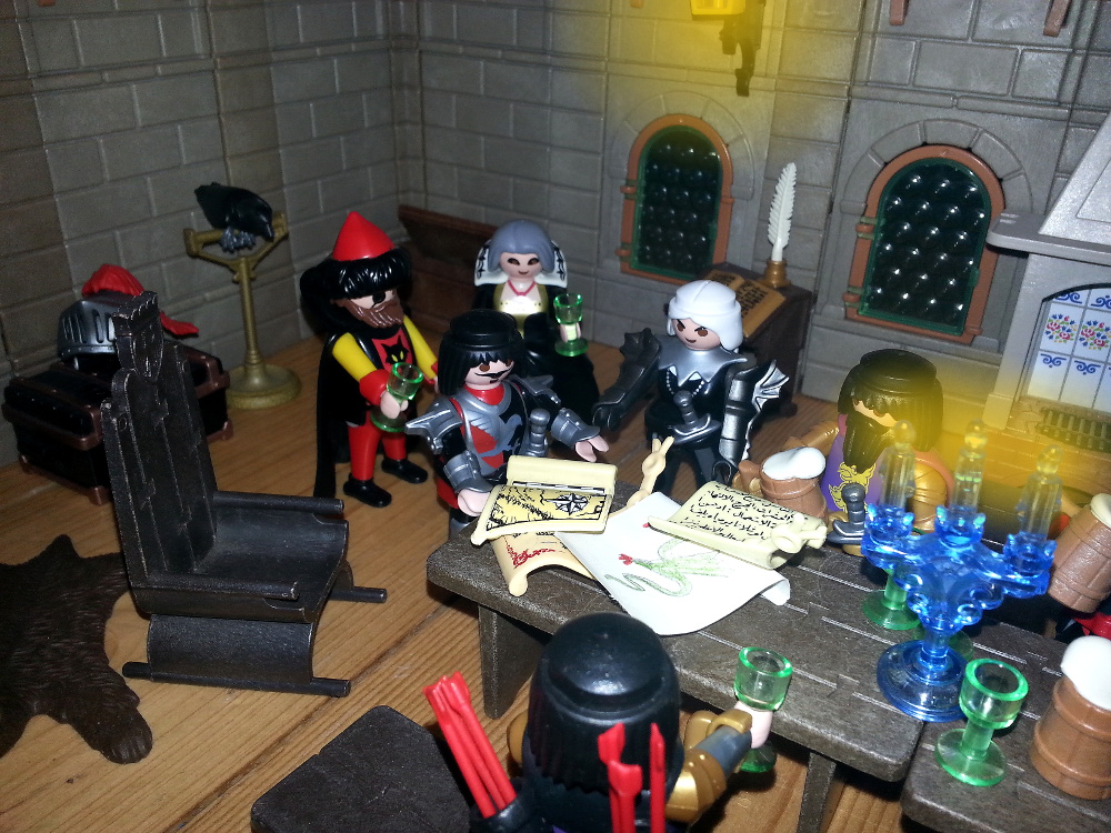 Rurik: "Aber wer sollte so mächtig sein? Das ist doch unmöglich! Fulbert, ich weiß ja nicht, was Ihr da auf Euren Pergamenten geschrieben habt, aber wie kommt Ihr dazu zu behaupten, die Pergamente wären glaubwürdiger, als das, was wir alle wissen?" Ich habe mein Leben lang der Schrift und dem ganzen Mönchszeug noch nie getraut. Ein Ritter braucht so was nicht!"