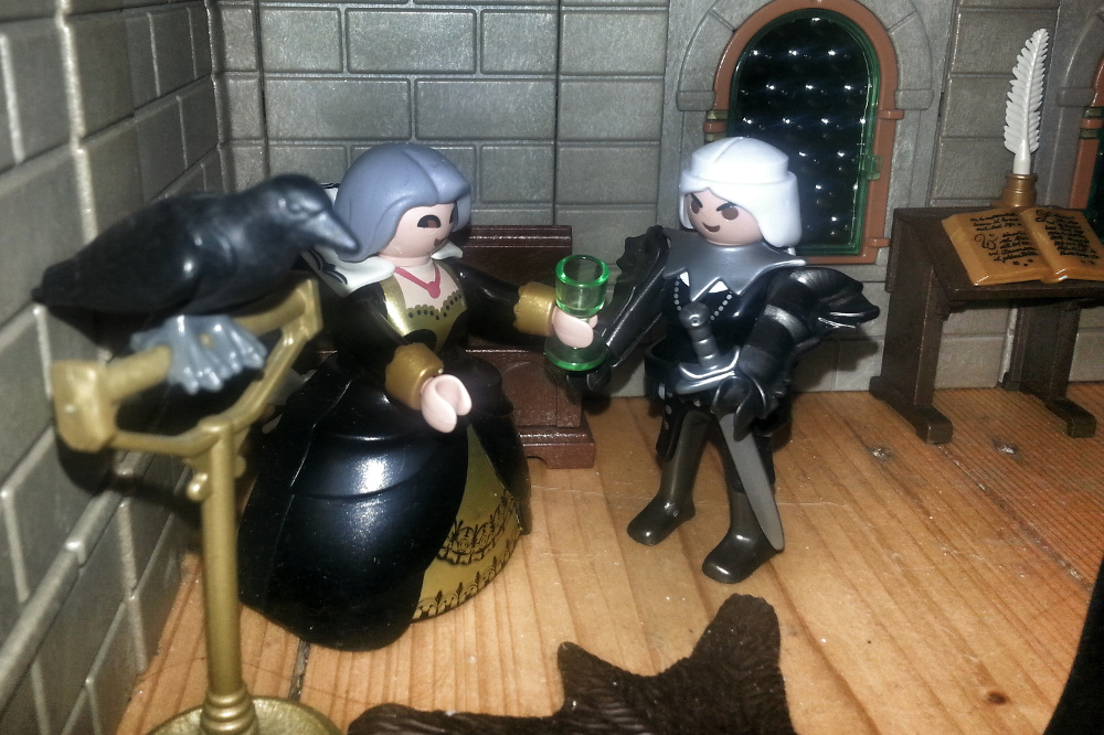 Panenka: "Keine Beleidigungen, bitte! Du weißt, dass ich vor 32 Jahren, nach der Geburt meiner Tochter Rahima, jenen Ort verließ, damit meiner Kinder auf Burg Schlangenstein aufwachsen konnten. Und wie steht's mit dir? Wenn wir schon mal beim Austausch von Wahrheiten sind..."