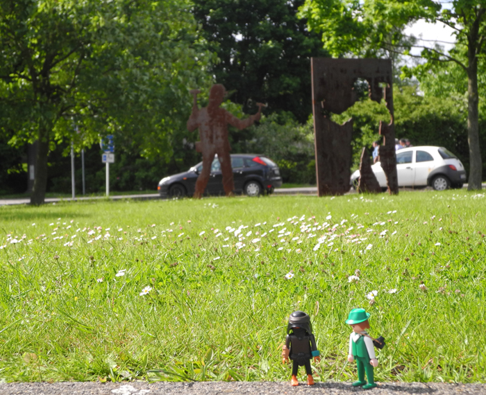"Im Außenbereich gibt es mehrere von diesen Eisen-Modellen. Manchmal turnen hier auch die Kinder drauf rum. So können Groß und Klein ihren Spaß damit haben."