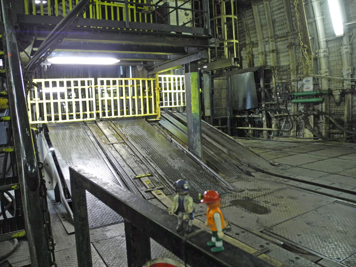 „Dies ist der Kreuzrahmen. Bei dem wird die ankommende Kohle auf den Ladepanzer geworfen. Von dort geht die Kohle durch einen Brecher auf´s Band!"