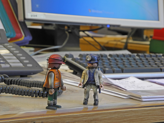„Hier ist mein Büro. In meiner Arbeitszeit bin ich nicht nur Untertage, sondern schlage mich auch mit Schreibkram herum. Irgendeiner muss die Berichte ja schreiben.“