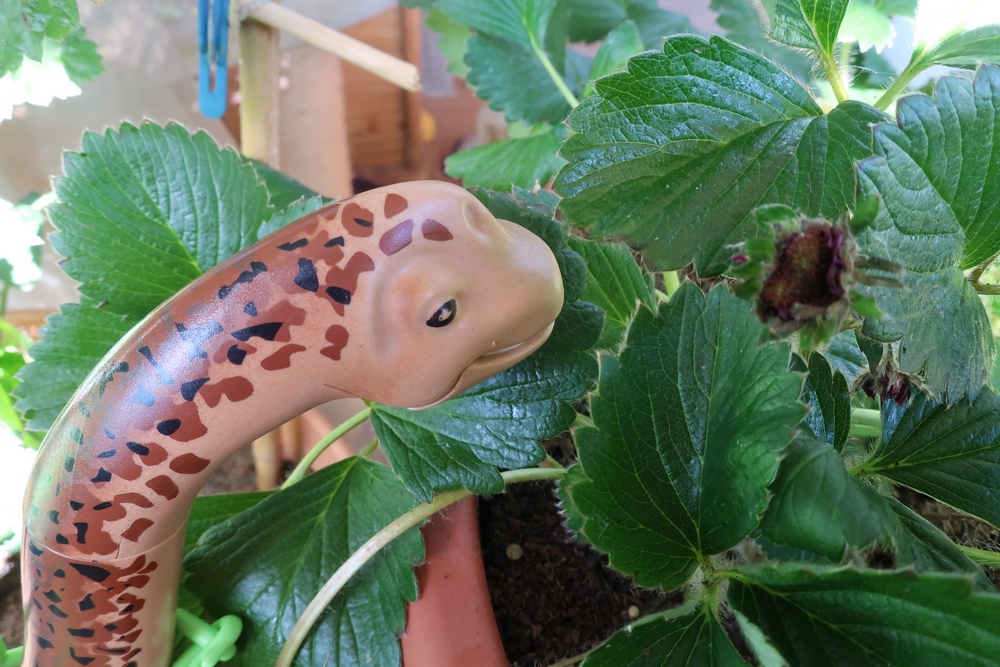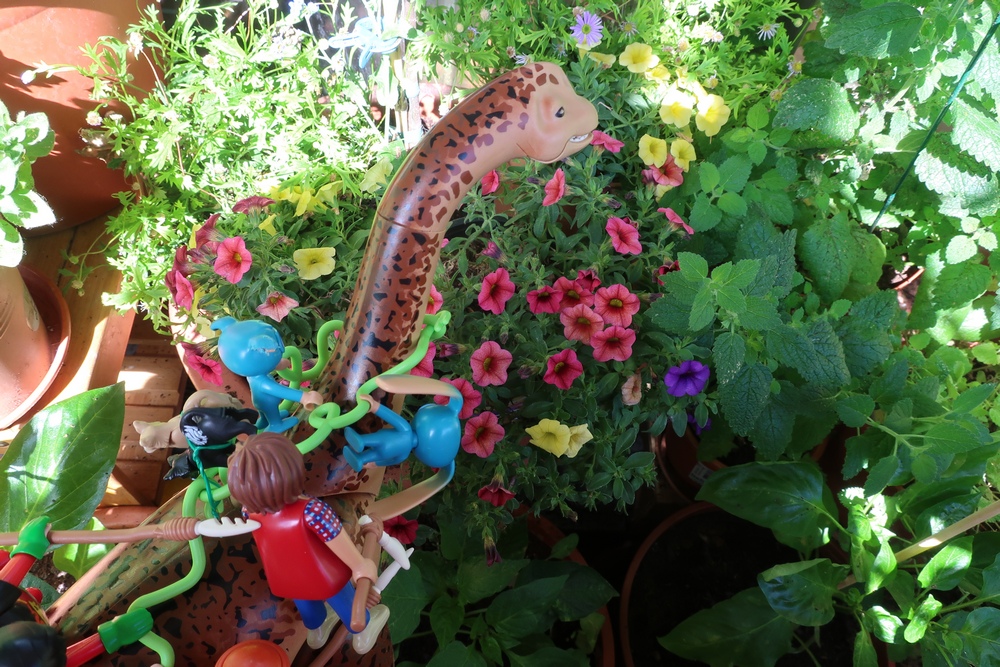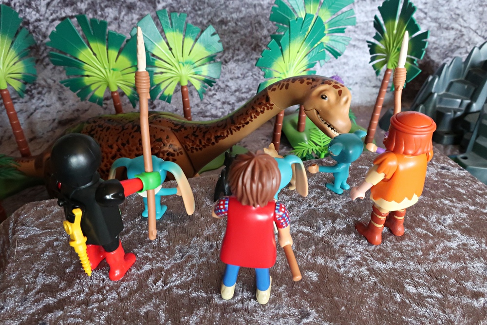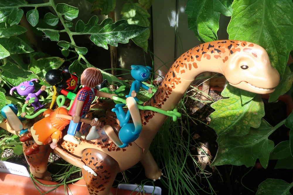 Der Dino stupst ihn etwas an. Da er ein reiner Vegetarier ist,