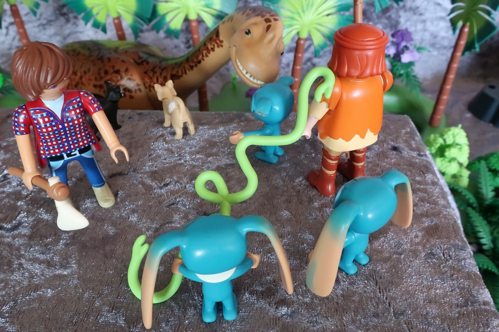 Koko spricht mit dem Dino. Zumindest hört es sich so an.