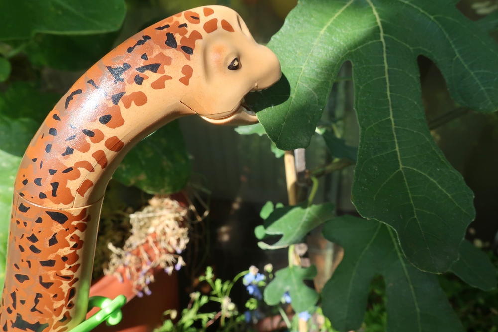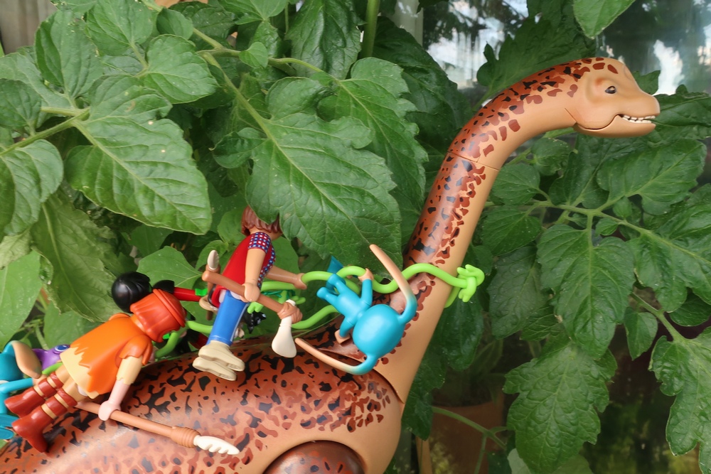 Während der Dino stehen bleibt und sich den Bauch füllt, pflücken
