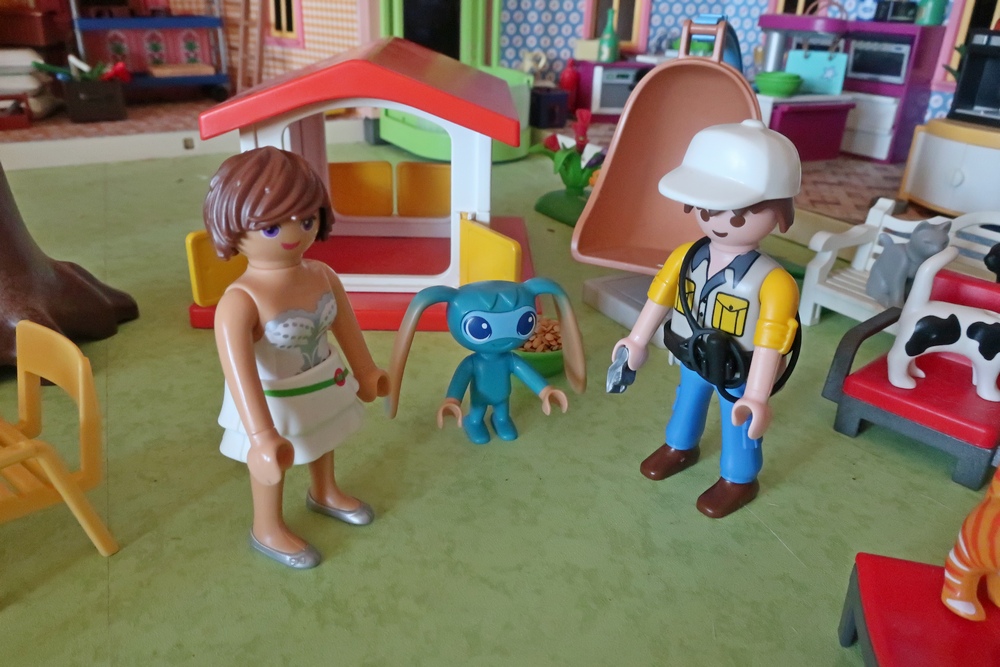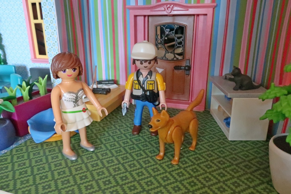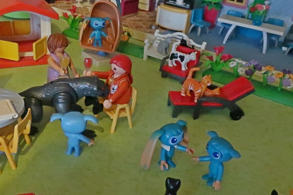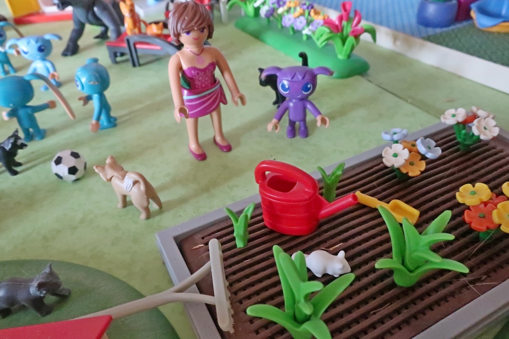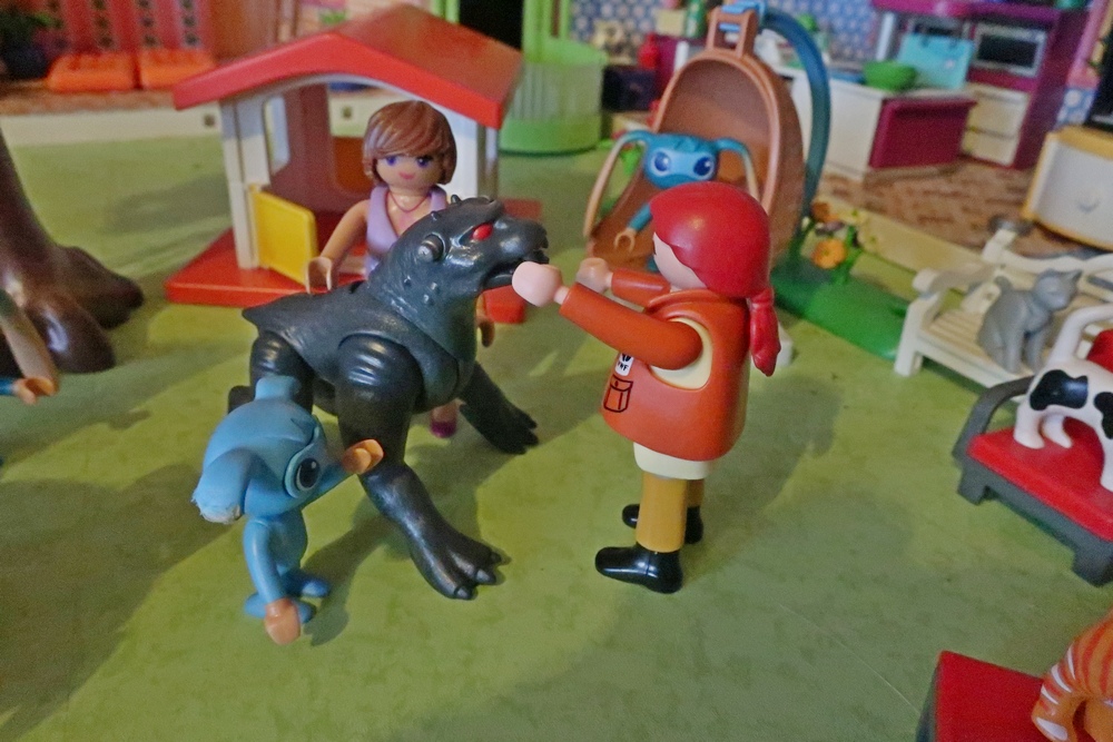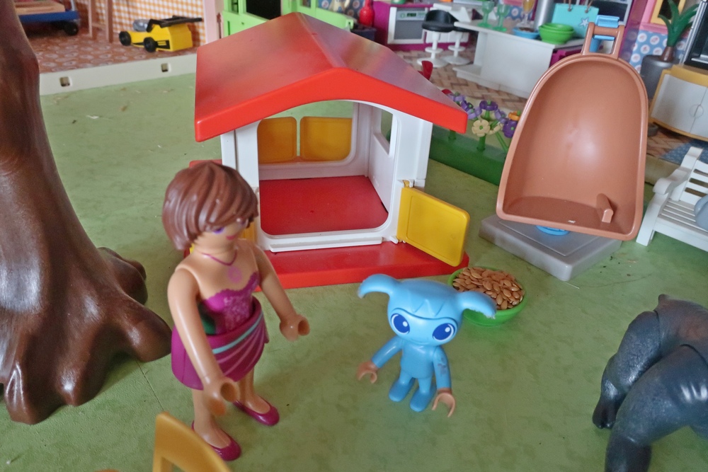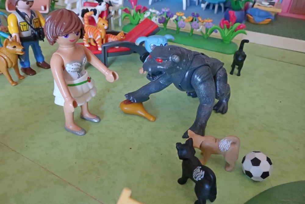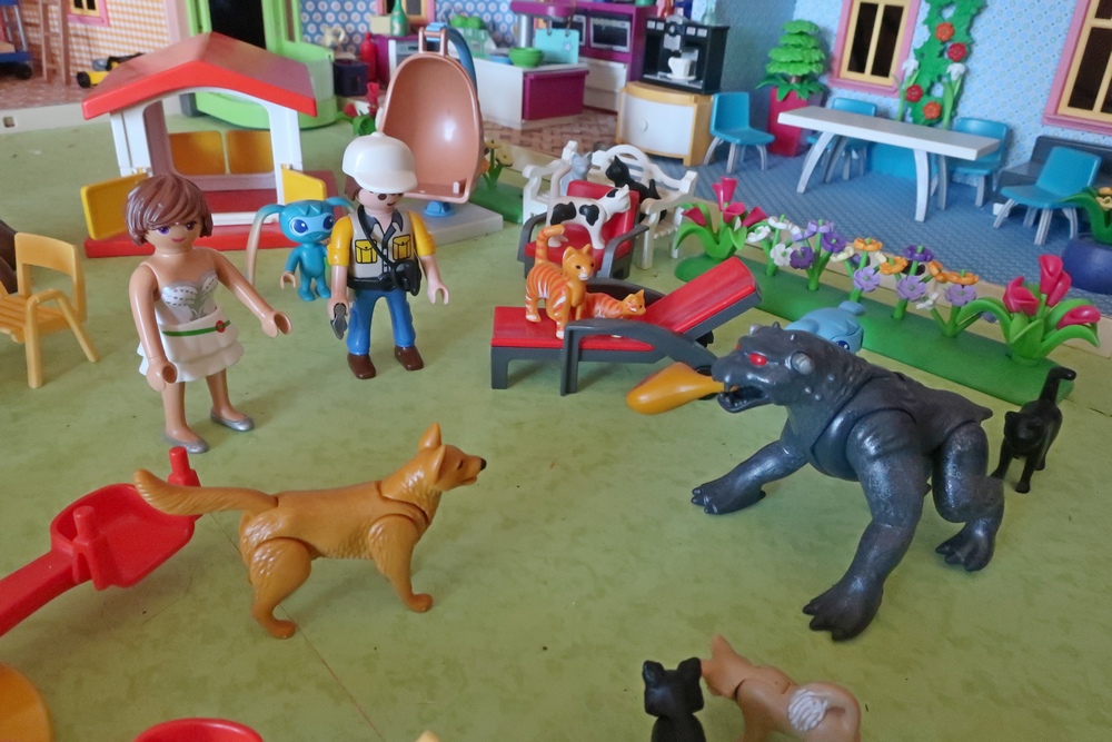 als er nun mit den Hunden, Katzen, Kikis und mir spielen darf.