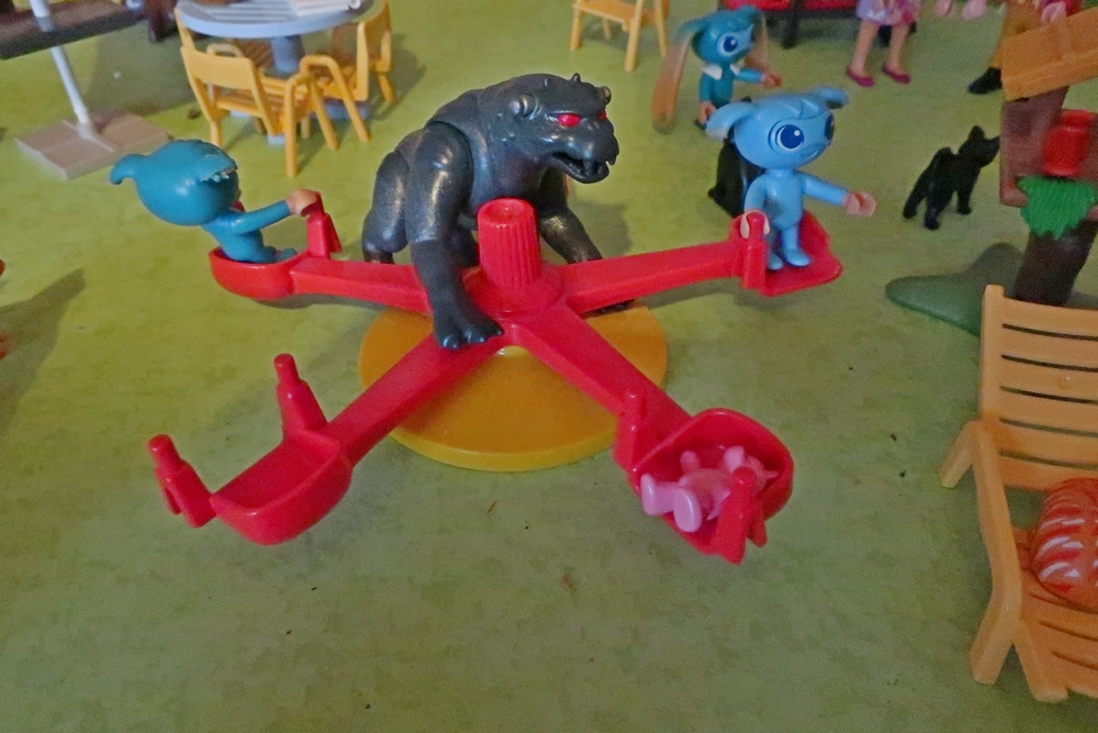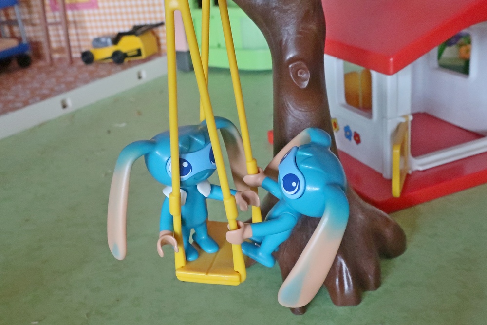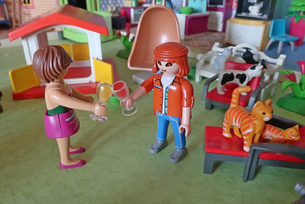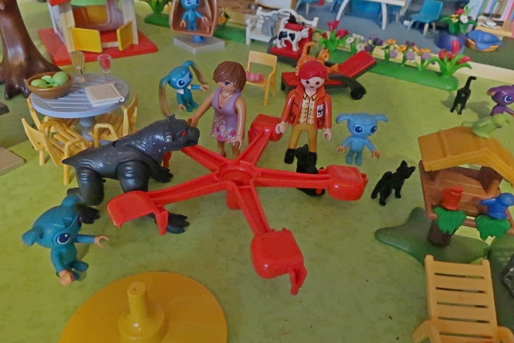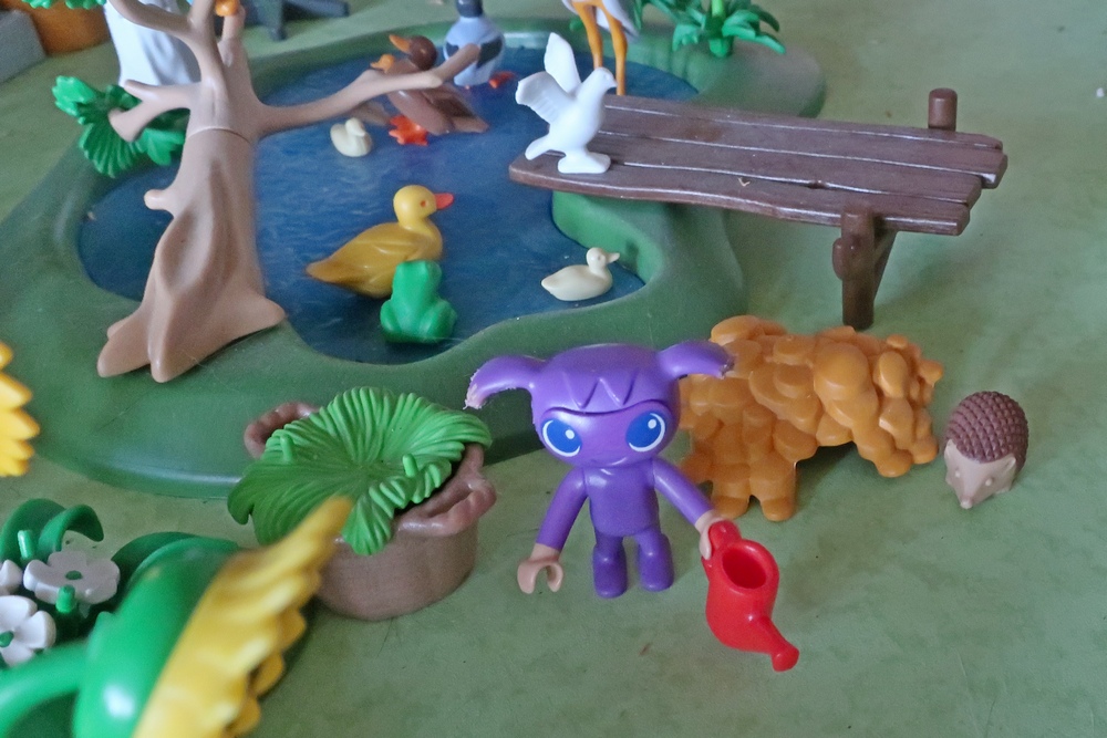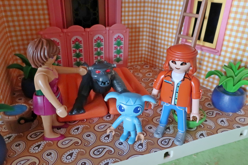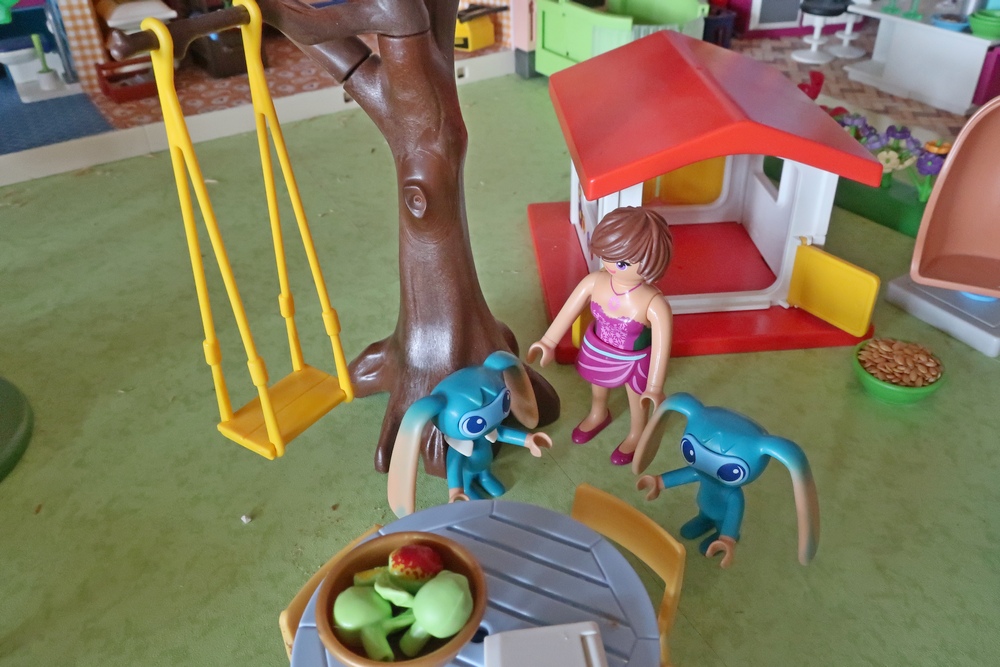 als er nun mit den Hunden, Katzen, Kikis und mir spielen darf.