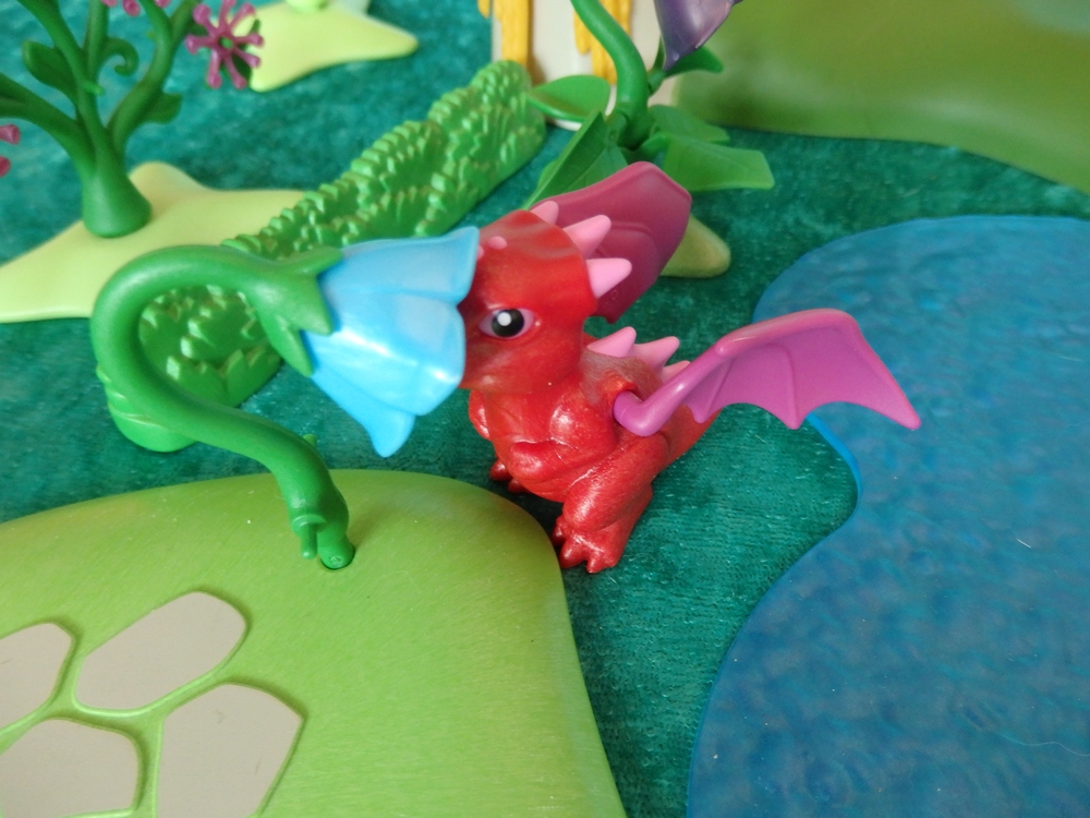 Der kleine Drache schaut mich aus großen Augen an.