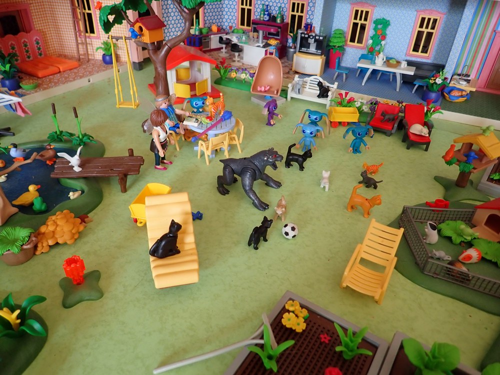 Die Kikis und Hunde spielen trotzdem im Garten.