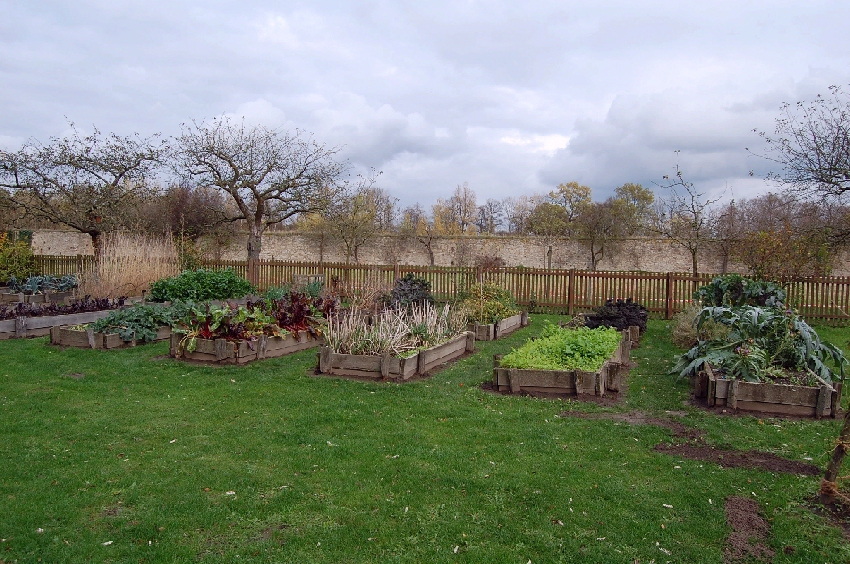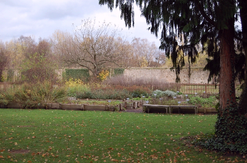 Der Klostergarten, im Hintergrund ist noch die alter Klostermauer zu sehen.