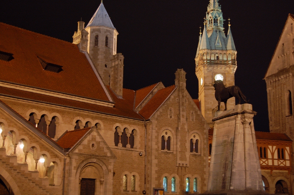 Die Burg Dankwarderode wurde erweitert... und war zu seiner Zeit die modernste Pfalz im Lande... Der Braunschweiger Löwe ist die älteste erhaltene Großplastik des Mittelalters nördlich der Alpen. Und das Wappentier der Stadt