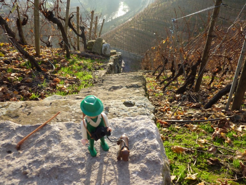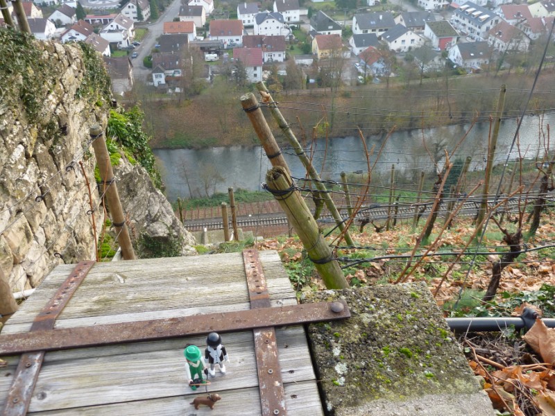 - Direkt unter uns fließt die Enz, und Felix bemerkt, dass die Steillagen wirklich steil sind!