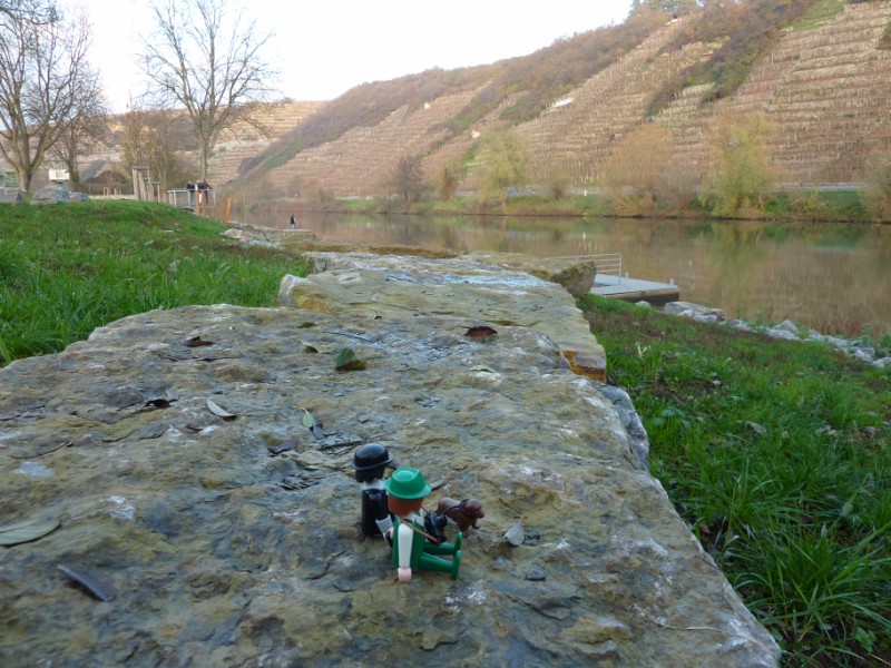 Hinter dem Museum folgen wir weiter dem Baumbach, und kommen ans Ufer des Neckars. Hier wurde vor kurzem ein Stück Neckar wie in früheren Tagen wieder für die Bürger zugänglich gemacht. Im Sommer kann man hier Grillen, die Füße ins Wasser hängen (der Neckar ist mittlerweile wieder sauberer geworden!) oder Kanus zu Wasser lassen.