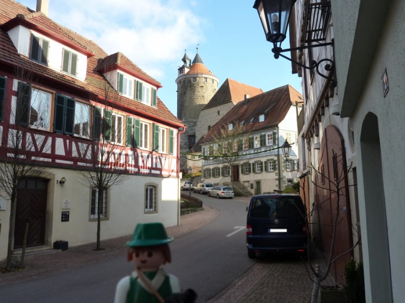 - typische Besigheimer Altstadtgasse mit Blick auf den zweiten erhaltenen Turm, den Schochenturm!