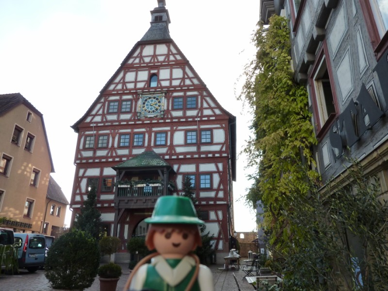 - Felix auf dem Marktplatz vor dem alten Rathaus von 1459