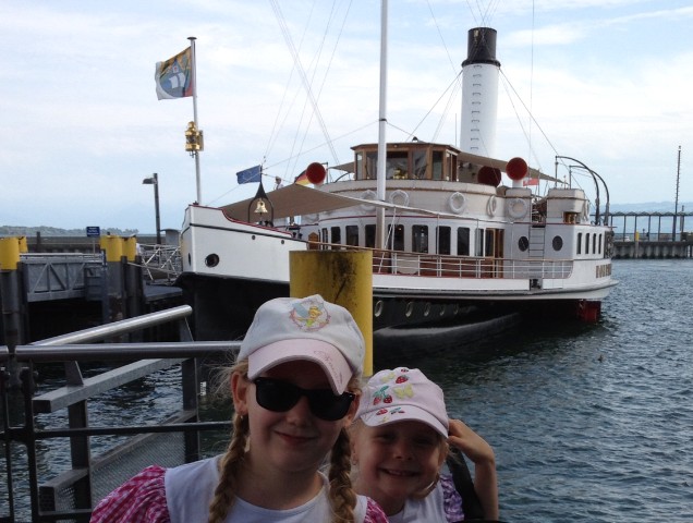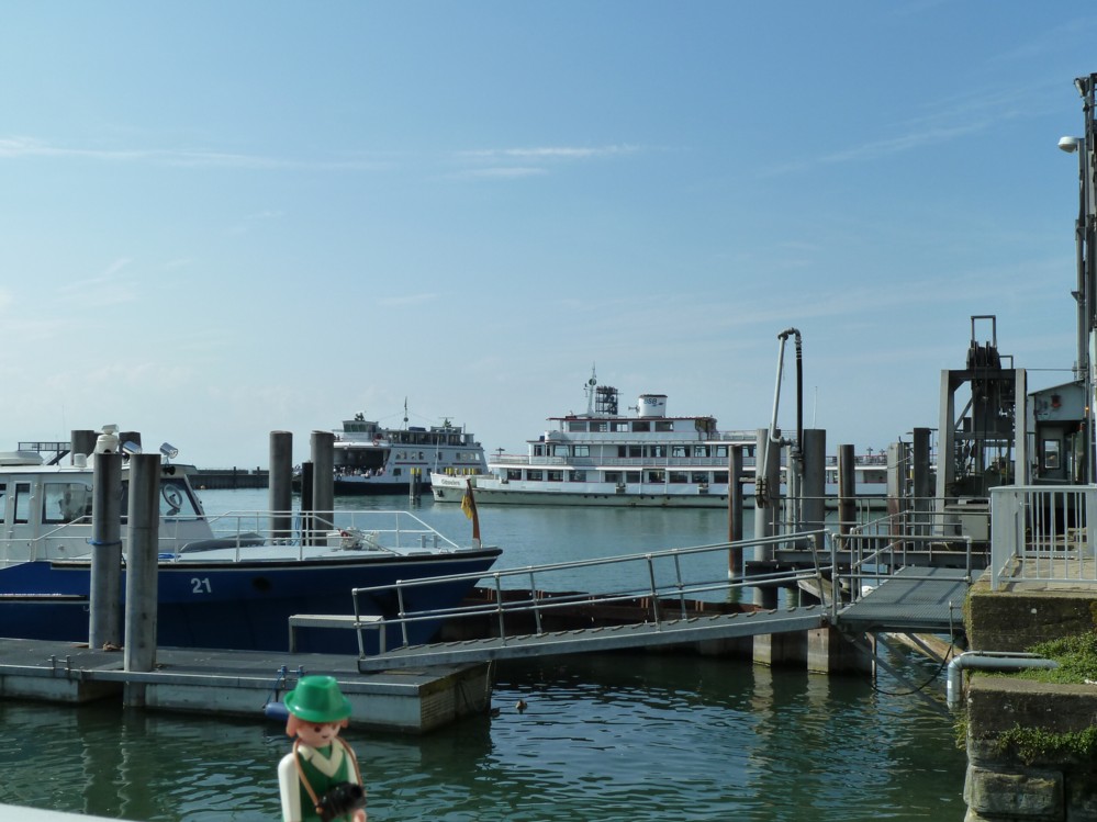 Felix: Eine Autofähre fährt in den Hafen ein. Frankfn: Mit der Autofähre kann man stündlich über den See in die Schweiz nach Romanshorn fahren. Zwischen Friedrichshafen und Romanshorn ist der Bodensee mit 14 Kilometer am breitesten und mit 254 Meter am tiefsten. Die fahrt dauert etwa 40 Minuten und erspart einen Umweg von 70 km. Bis 1976 wurden auch Güterwaggons auf den Fähren verladen. [/b][/size][/color]