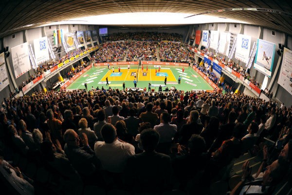 Die VfB Friedrichshafen Volleyballer sind dort zu hause. In der Halle wird 1. und 2. Bundesliga gespielt. Das Erstliga Männerteam ist mehrfacher Deutscher Meister und Pokalsieger. Frankfn: So sieht es in der Arena aus wenn gespielt wird. 2007 schrieb der VfB Volleyballgeschichte. Als erste deutsche Volleyballmannschaft konnte der VfB Friedrichshafen die Champions League gewinnen. Felix: Das neue Messegelände.