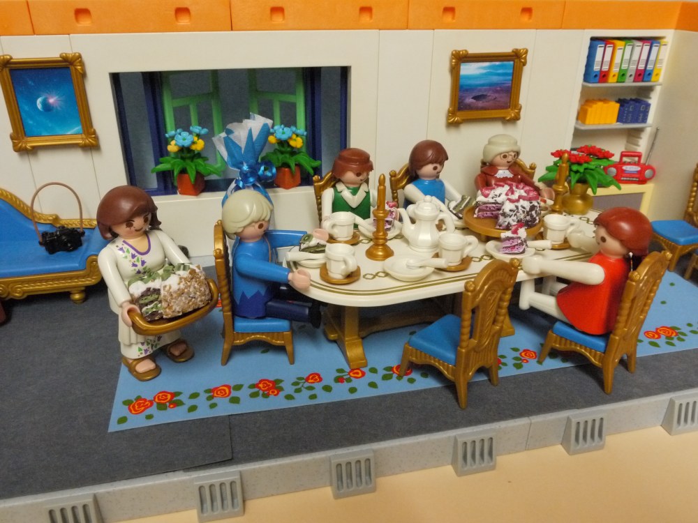 Oma lebt bei uns im Hause, hat ihre eigene Wohnung, aber wenn besondere Leute zu Besuch kommen, ist sie natürlich bei uns mit dabei.