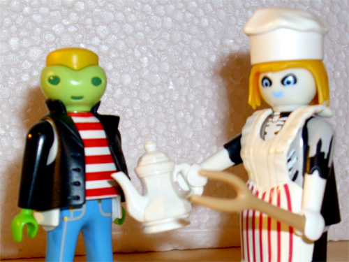 "Smörrebröd, smörrebröd, römpömpömpöm! Heute wir maken eine köstliche Fröschschenkelein. Dazu..."
