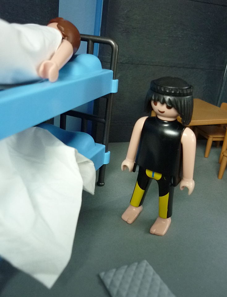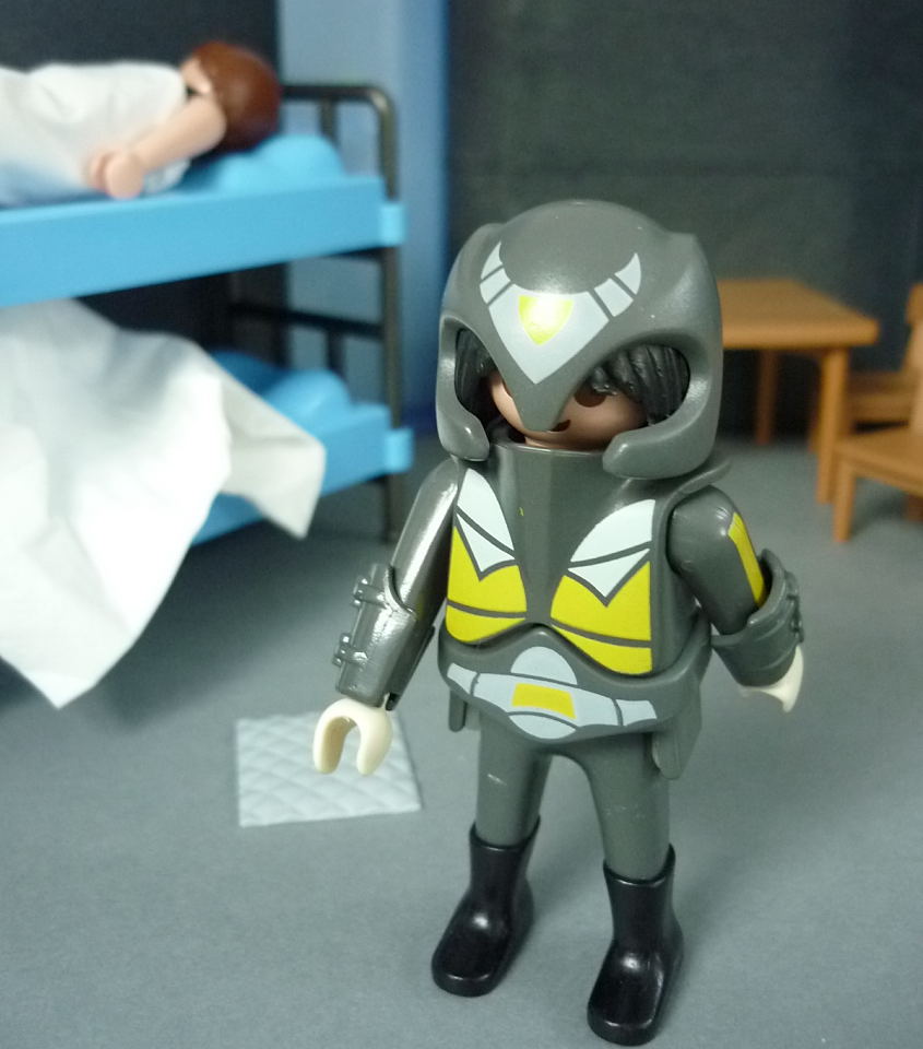 Eine ganze Zeit lang sitzt er da und denkt nach. Dann irgendwann verlässt er das Schlafquartier und seine Spur verliert sich in den dunklen Fluren des Raumschiffs.