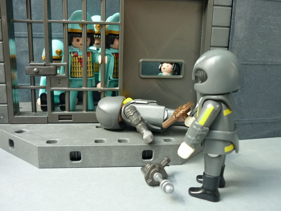 Dann plötzlich rumste es an der Zellenwand und die Wache sank in sich zusammen.