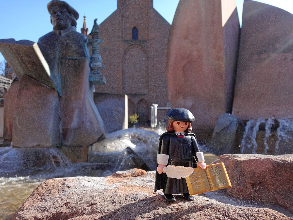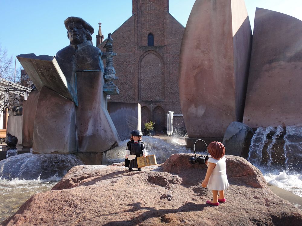 Ein Passant macht noch ein Bild mit mir vor dem großen Luther.