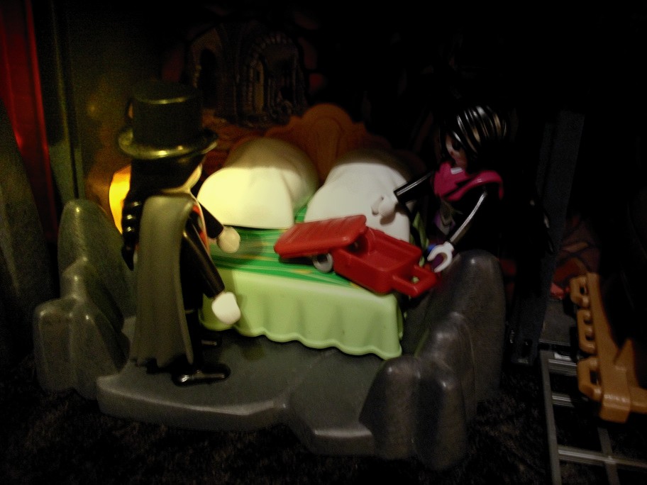 Betty: „Während wir hier sind?“ Vlad: „Ich wüßte zu gern, wie lange wir nun geschlafen haben?“