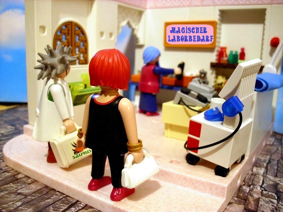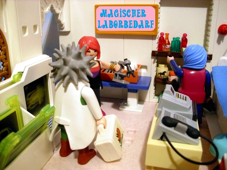Verkäuferin: „Und hier sind die neusten Tinkturen und Essenzen. Die Rezepte entsprechen dem allerneusten Stand der Forschung.“ Dr. Evil: „ Also Fräulein, ich denke, wir nehmen die Strahlenmaschine, Verbandszeug, die Geräte und von den Essenzen zwei Kisten und was Miss Tough sonst noch so für richtig hält.“