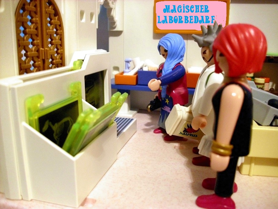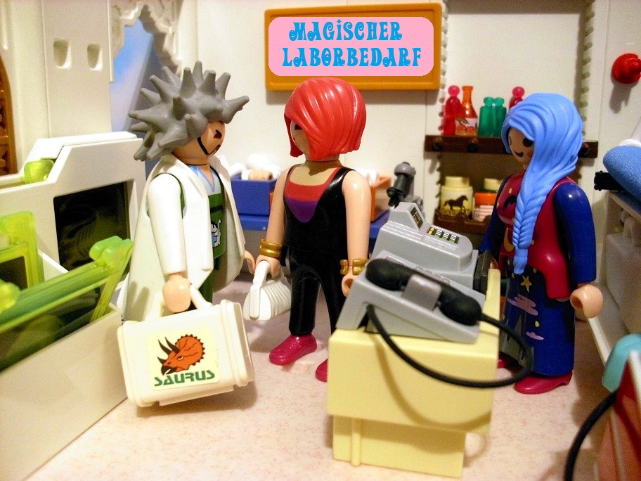 Polly: „Also wir bräuchten dringend einige Dinge für ein genmagisches Labor.“ Polly: „Was ist das?“
