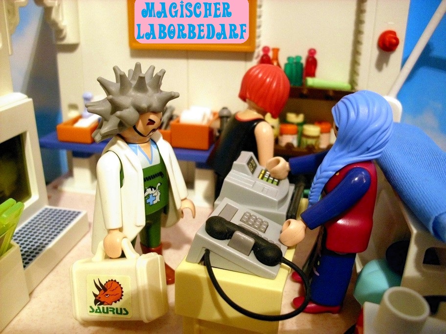 Dr. Victor Evil: „Ja, wir müssen endlich aus dem Zwergenkeller raus. Aber gleich einkaufen?“ Verkäuferin: „Willkommen im Magischen Laborbedarf. Wie kann ich ihnen helfen?“