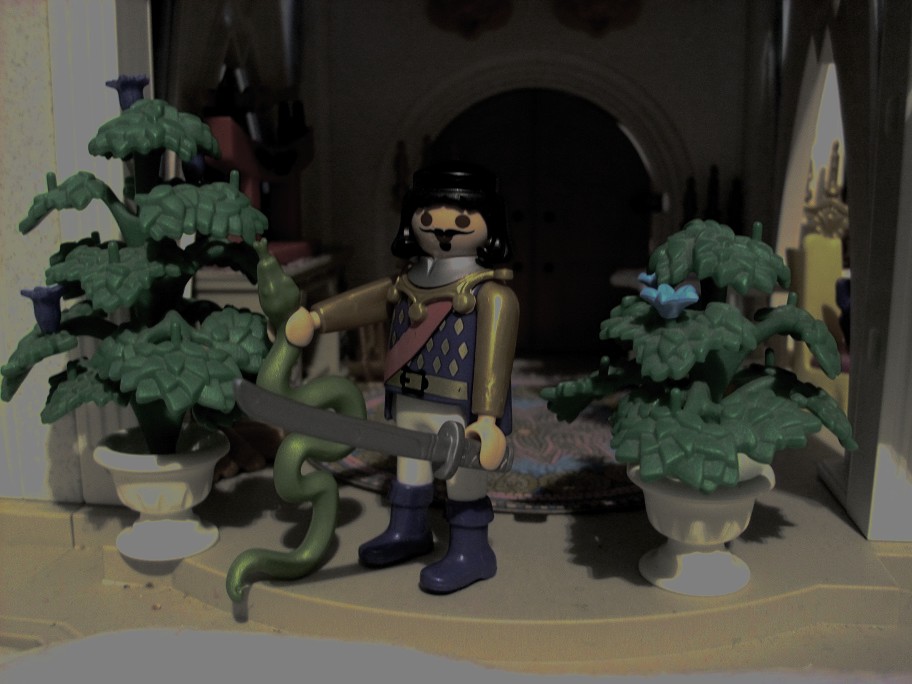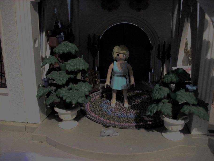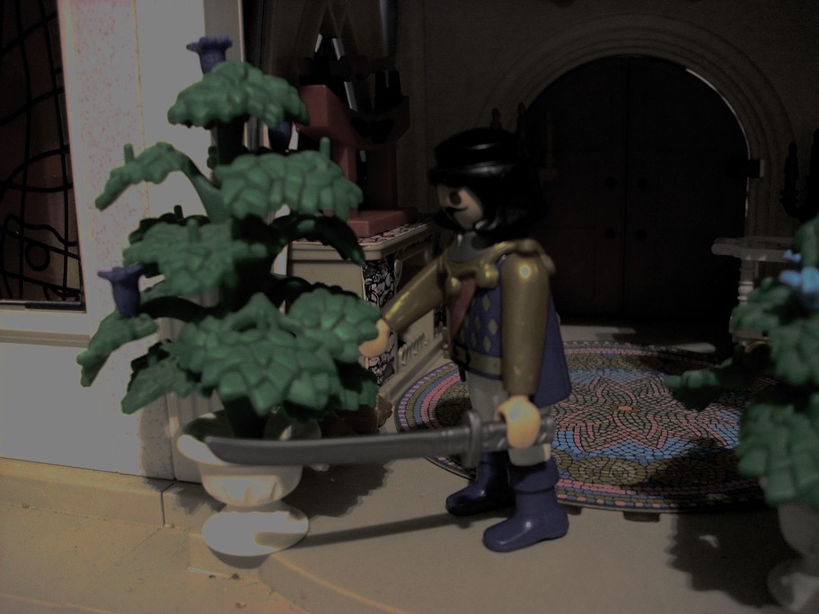 Dieses Mal hat Blitz etwas gehört. Und mit einem Schwert bewaffnet geht er Vorsichtig durch die Räume