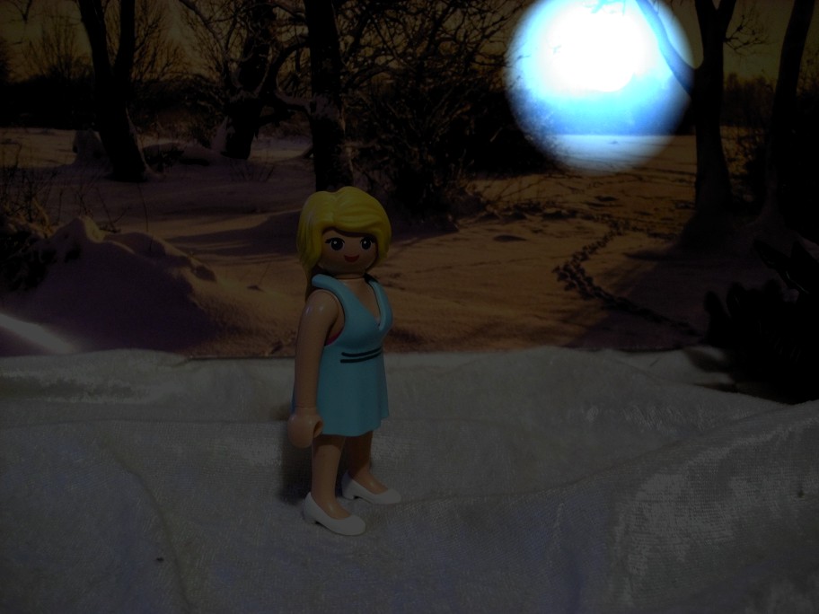 „Von da drüben kommt die Musik!“ stellt Lenej fest und entfernt sich in ihrem Nachthemdchen weiter von dem Schloss. Wie kalt es ist, merkt sie gar nicht.