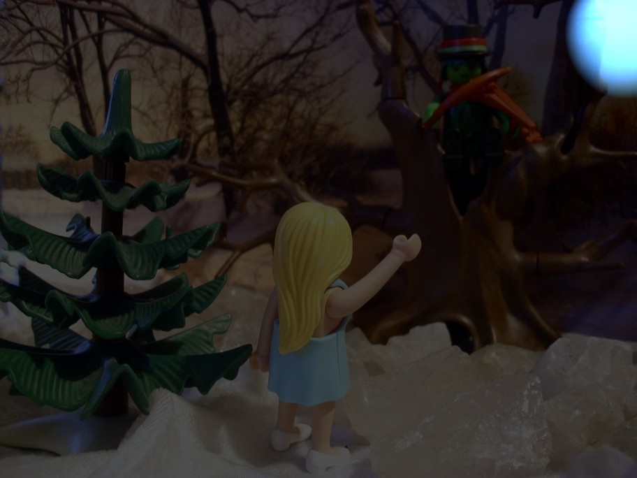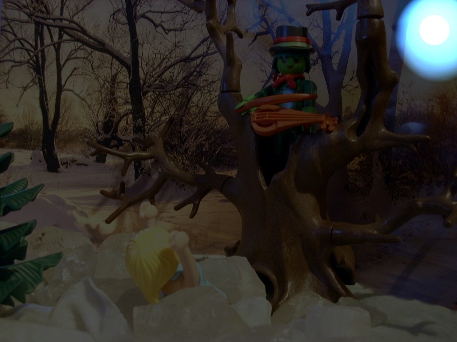 „Du weißt auch nicht, wo die Musik herkommt?“ fragt sie den Schneemann, der noch grinsend draußen steht. Aber der antwortet nicht