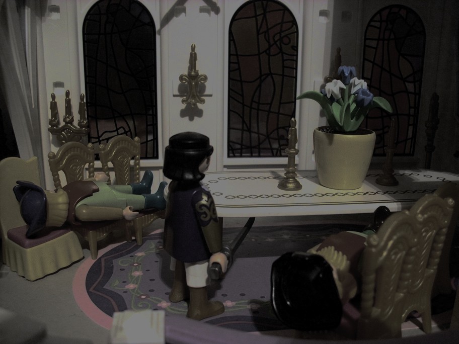 „Lassen Sie uns nachsehen.“ Schlägt Dr. Evil vor und steht zusammen mit Miss Togh vom Tisch auf. Dicht gefolgt vom Königspaar.