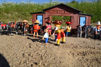"Warum seht ihr euch nicht die Ponys neben der Ranch an? Sie könnten die richtige Größe für euch haben. Und ein richtiges Pferd für die Lady hätten wir sicher auch noch", schlägt Henry vor.