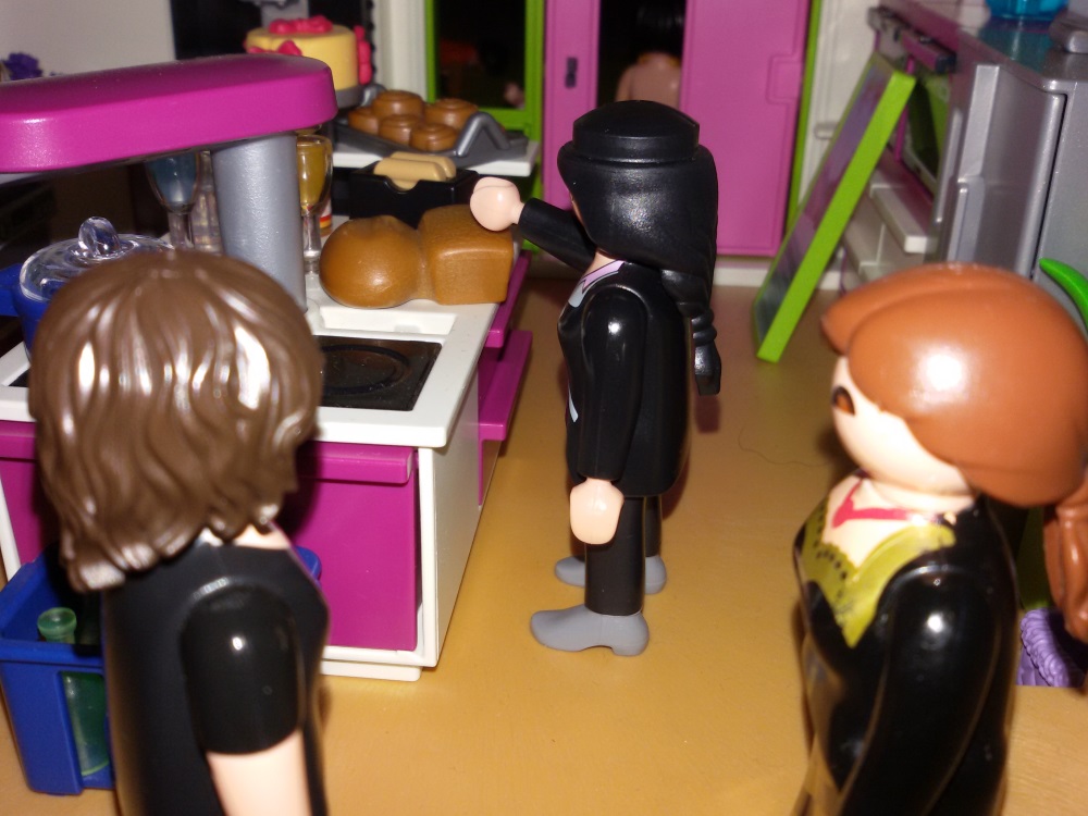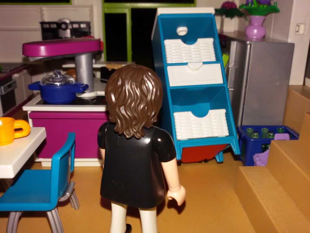 Ich könnte dir doch schnell ein bisschen helfen.“, sagt Floranja und deutet auf das Chaos in der Küche.