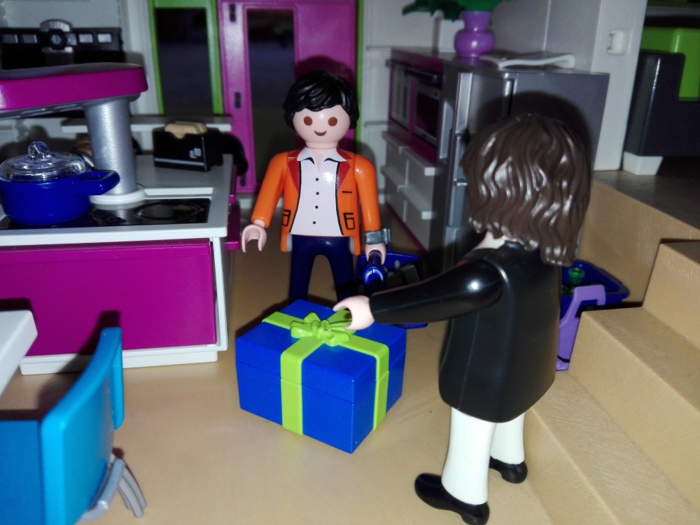 „Bitteschön! Ich würde mich freuen, wenn du mal wieder vorbei kommst auf einen Kaffee oder so.“