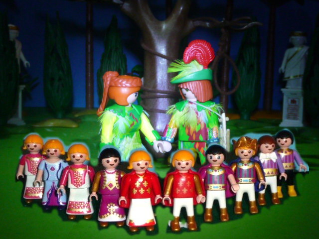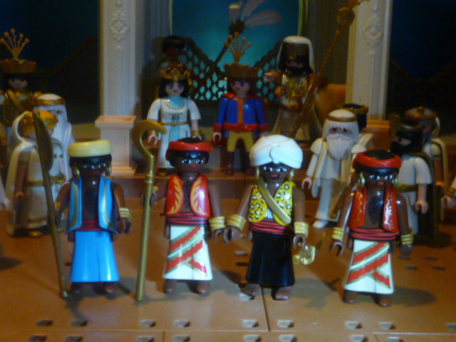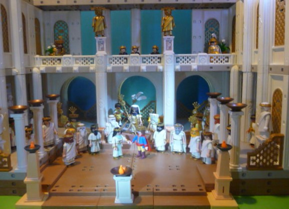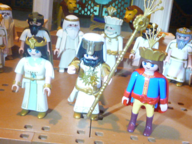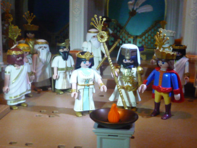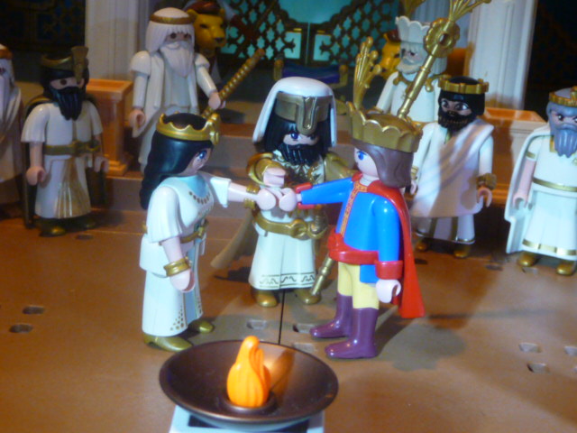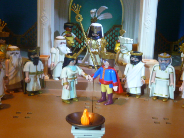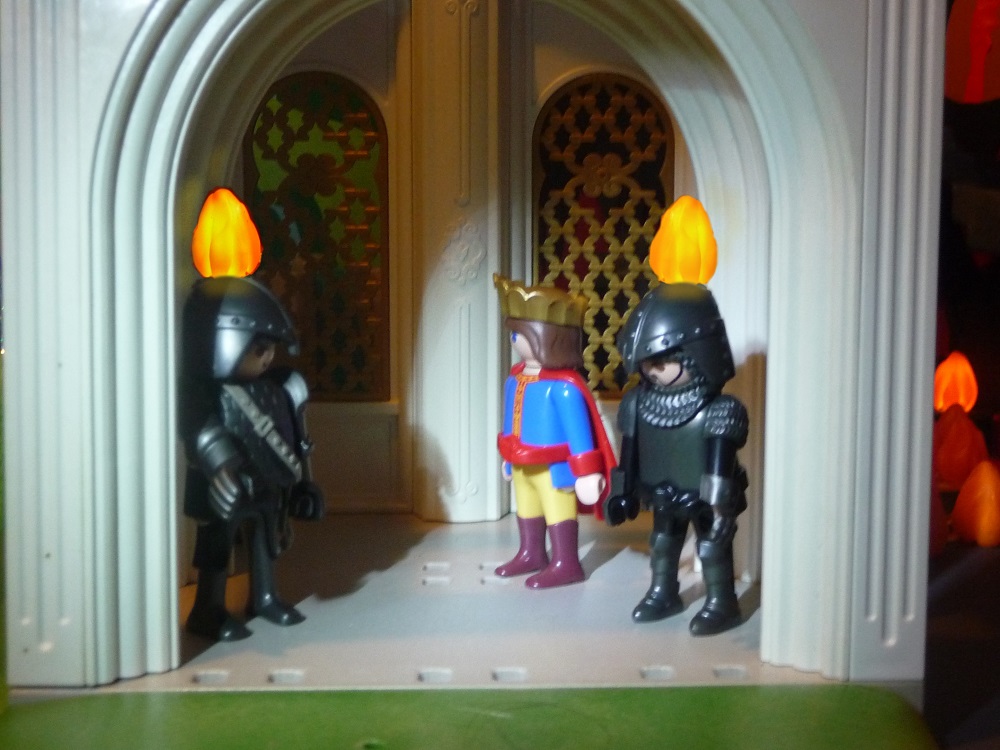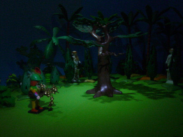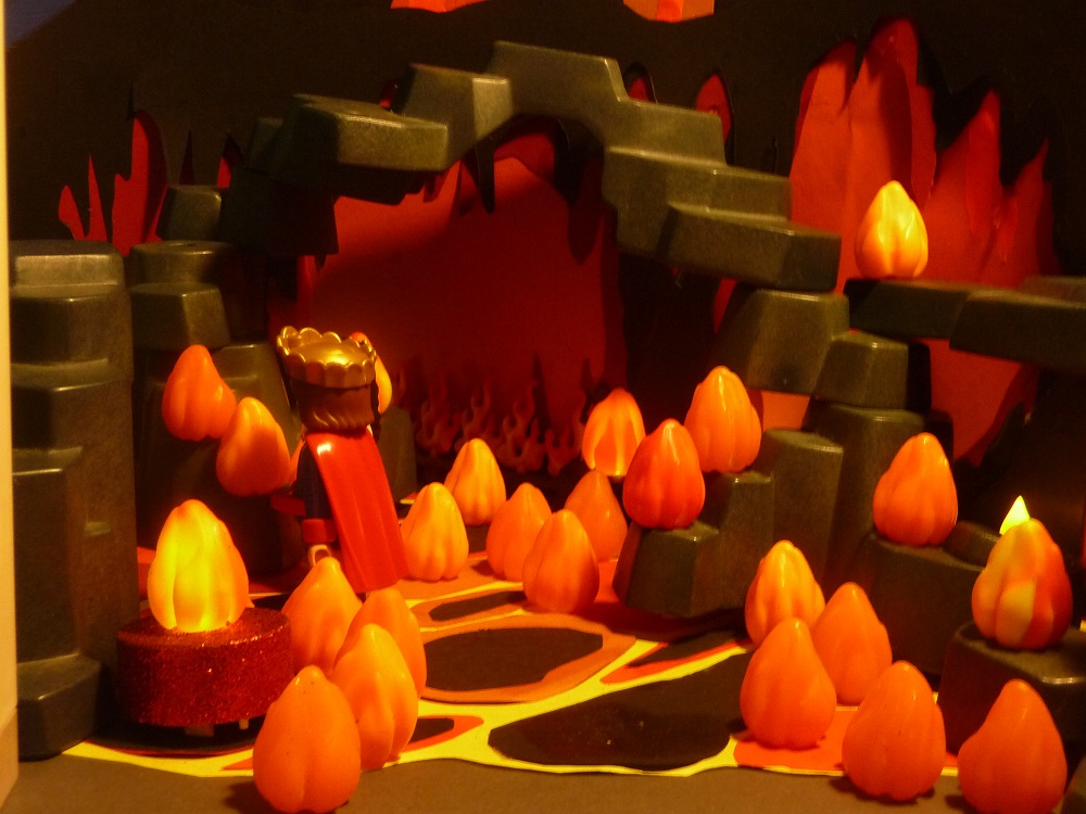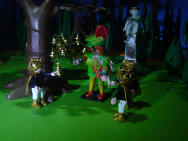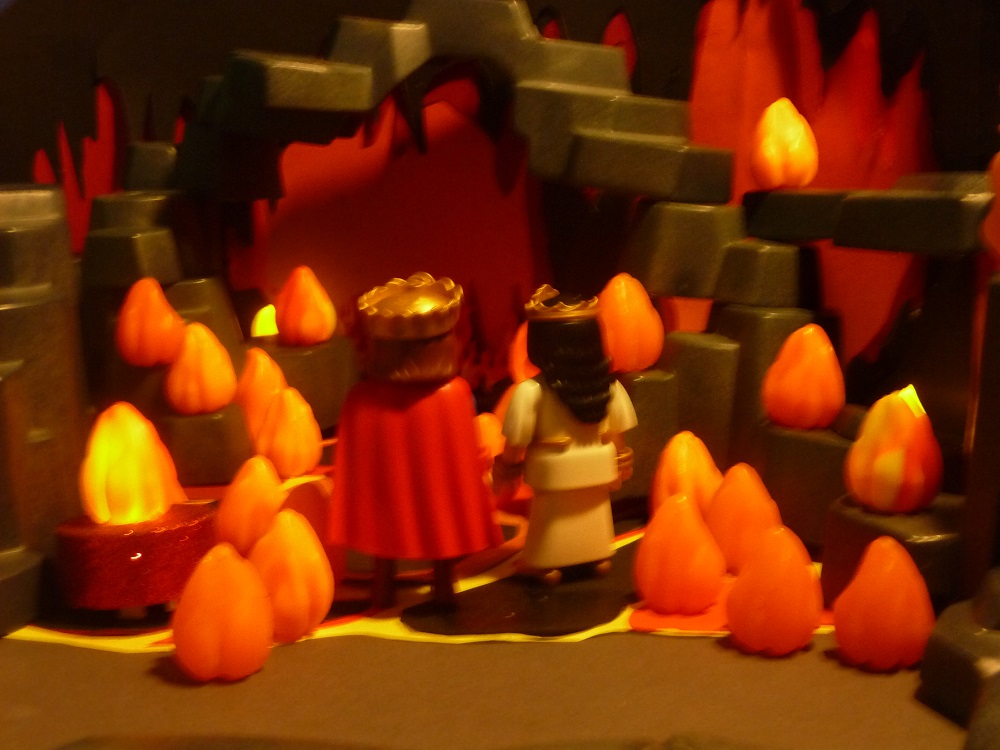 (Er zeigt nach den beiden Felsenhöhlen.)