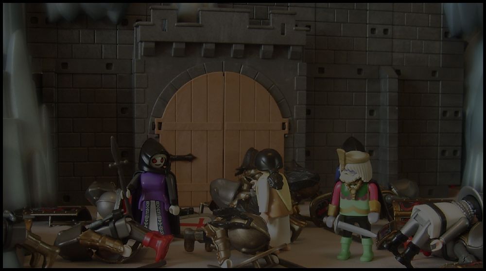 Dann schrie er, „Rückzug!“ Ras kam zu Sinnen und brüllte, „Lilian! Meine Frau!“ Aber Eborin ignorierte ihn, gab ihm stattdessen einen Hieb mit dem Schwertknauf, so dass Ras betäubt erschlaffte.