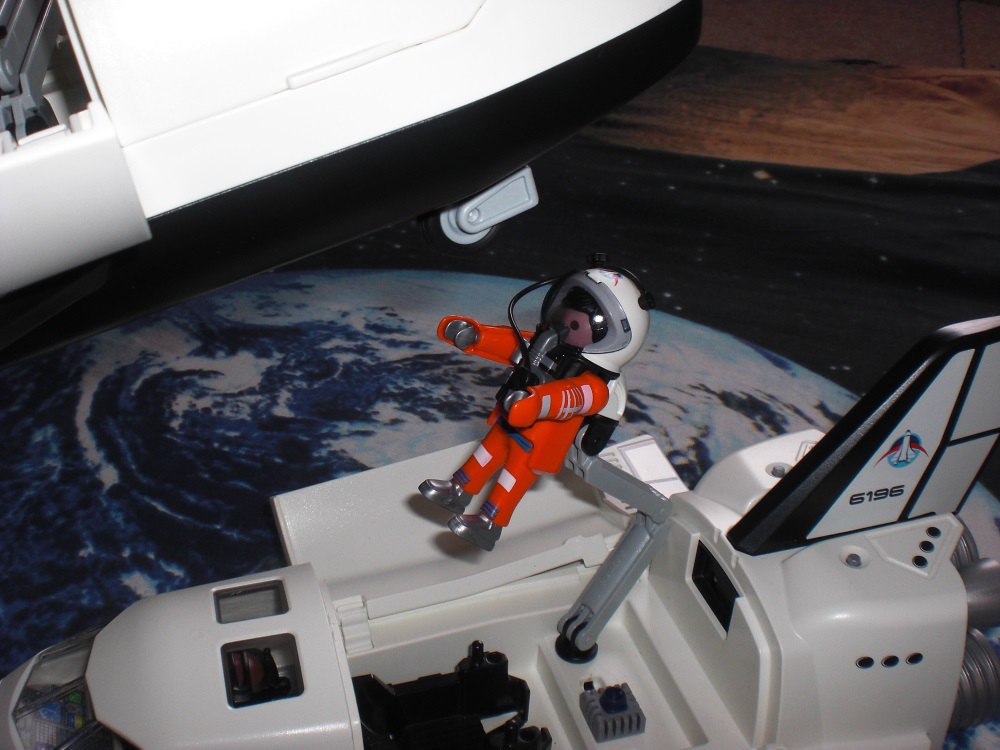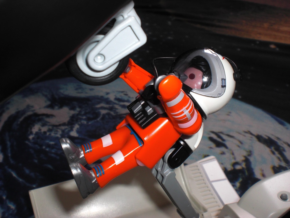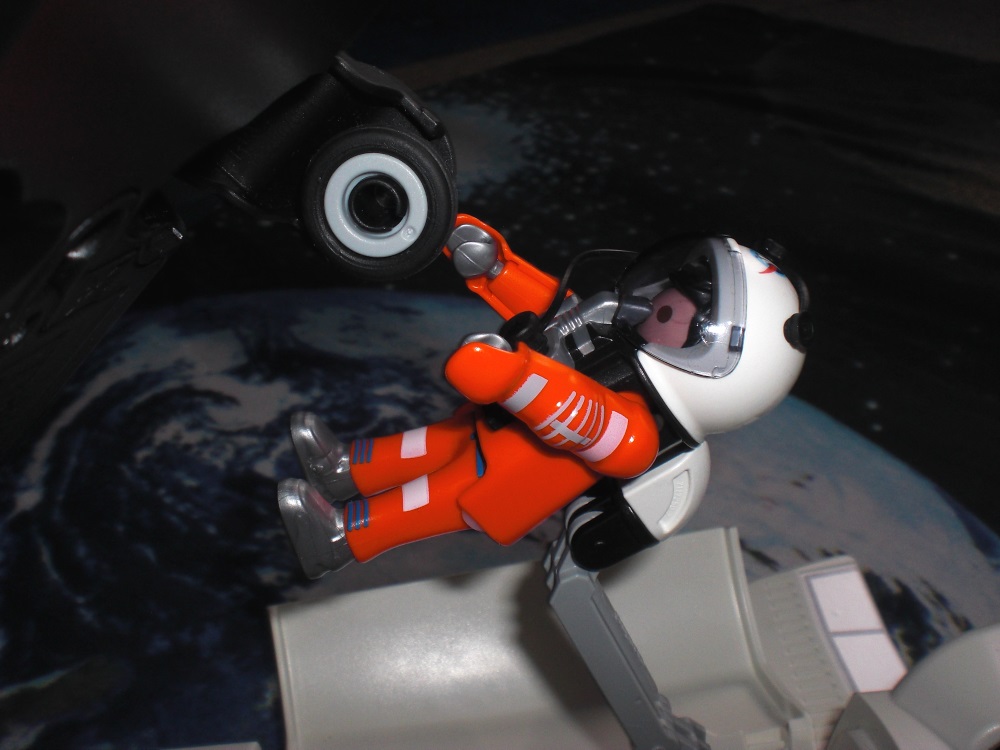 und Tom steuert ihn vorsichtig zur Unterseite der Discovery.