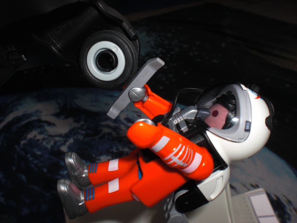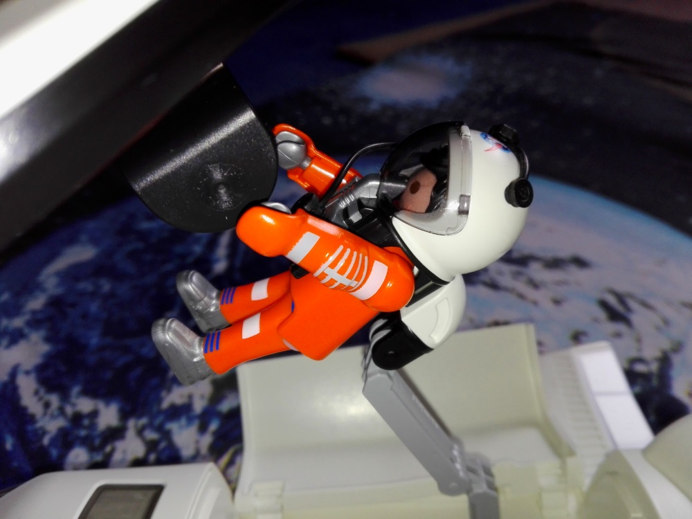 Nachdem die Raumfähren voneinander abgekoppelt haben, bereitet Alex den Roboterarm vor.