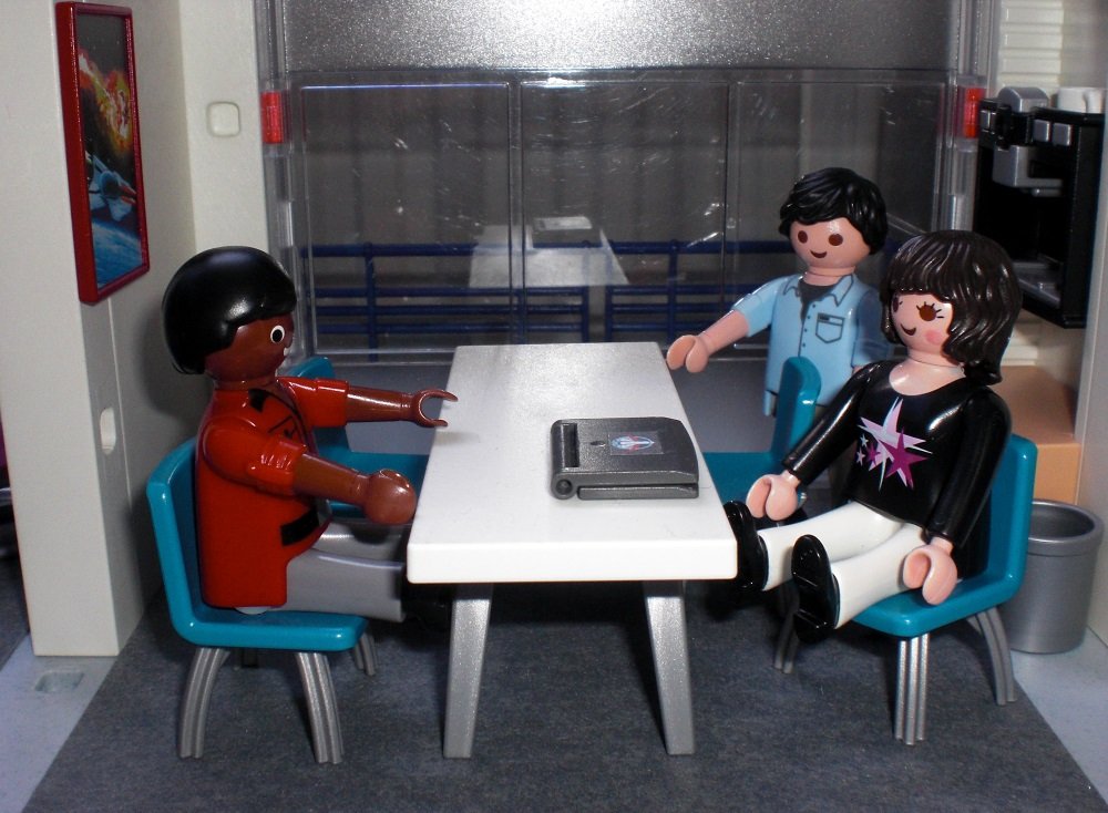 „So viel ich weiß, soll ein Satellit repariert werden.“, antwortet Alex.