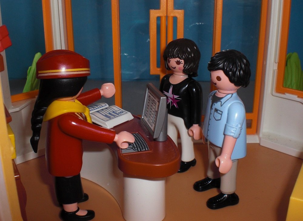„Okay. Ich schaue mal nach.“, erwidert die Hotelangestellte.