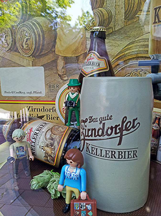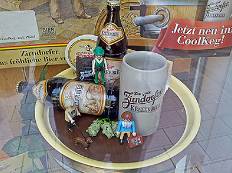 Deren Schaufenster weckt „Die Gier nach dem Zirndorfer Bier“ bzw. „Das fröhliche Bier vom Land“, so zwei langjährige Werbeslogans.
