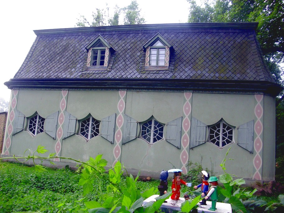 „Das ist die Chinesische Teeküche. Von hieraus bringe ich den Tee ins Teehäuschen oder oben ins Drachenhaus.“ Die Chinesin ist sehr freundlich.