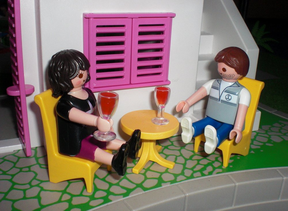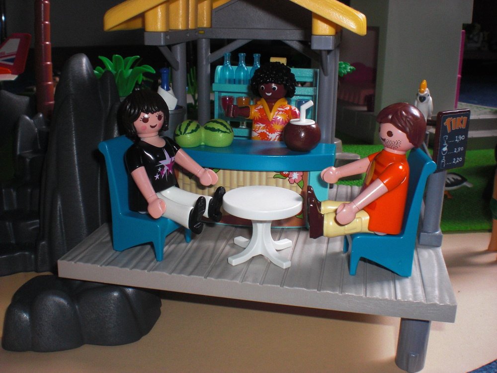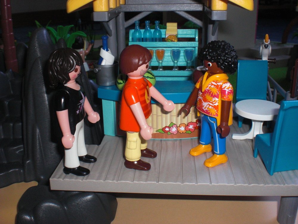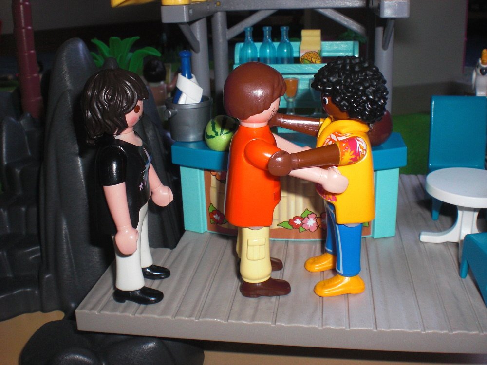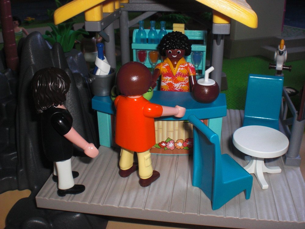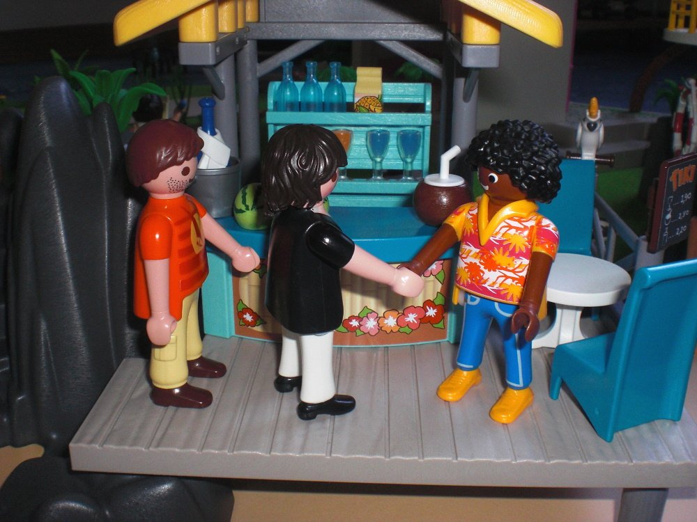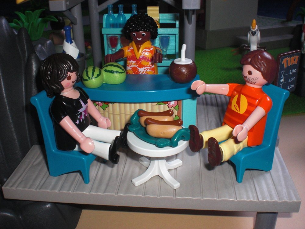 Die beiden gehen zu einer Bar in der Nähe des Strandes.