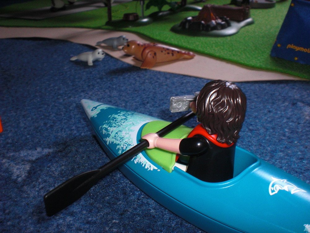 als ein Kajakfahrer an ihnen vorbeifährt.