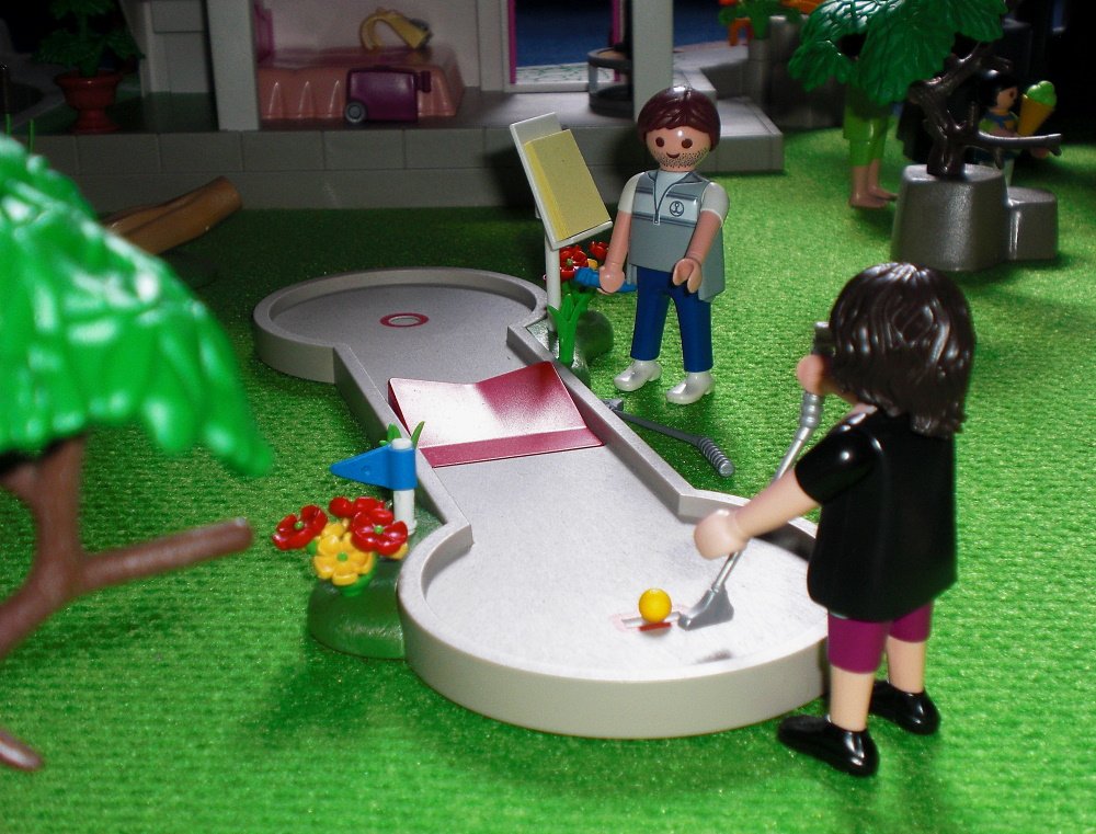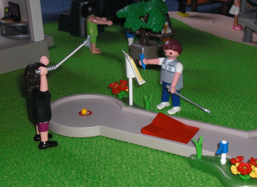 Lucas überlegt. „Hm...Wir könnten Minigolf spielen.“