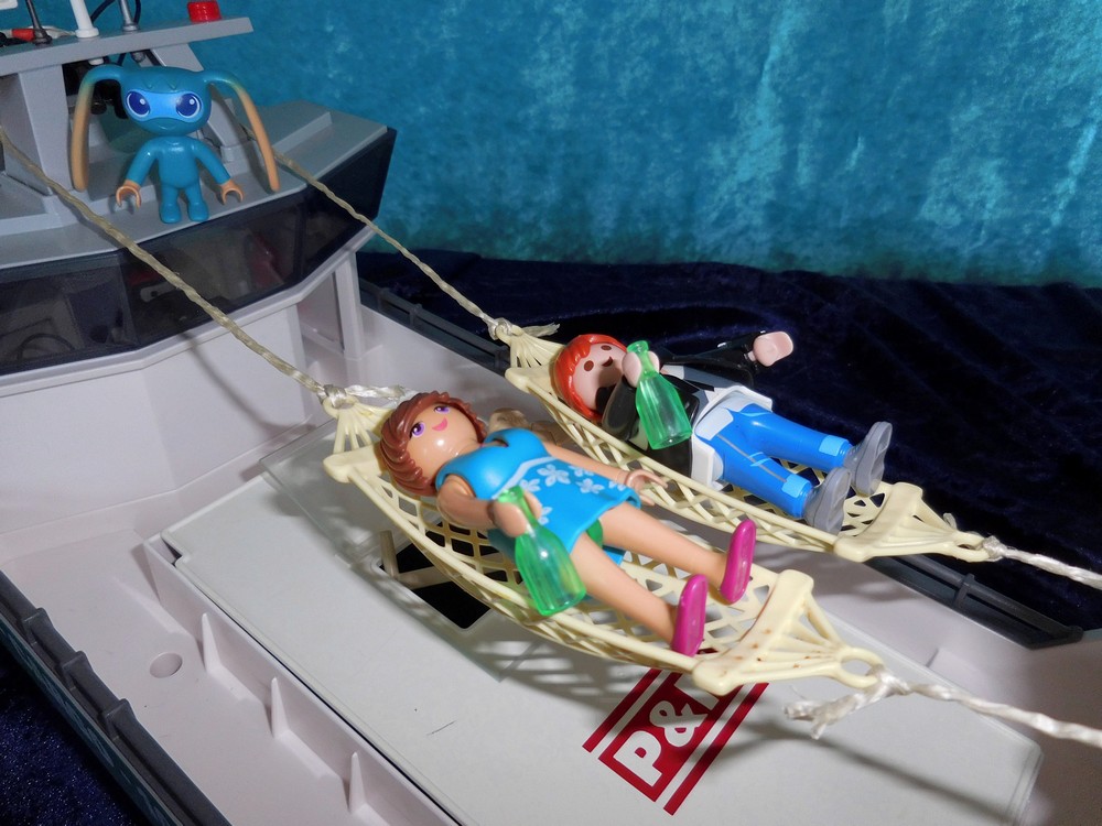 Das Boot ist Original. Habe ich direkt von DS geholt. Ich hab einfach keine Zeit zum Basteln :sad Als ich den Baucontainer orderte, hoffte ich ja noch, dass er wirklich in den Laderaum paßt. Tut er leider nicht :grrr Finde ich voll daneben von Geobra, dass ein Baucontainer zu groß für ein Containerschiff ist. Aber ich denke, es fällt nicht übermäßig auf.