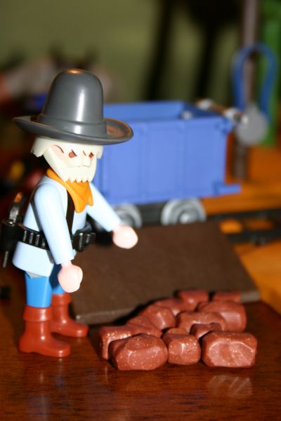 Colt begutachtet das goldhaltige Gestein..